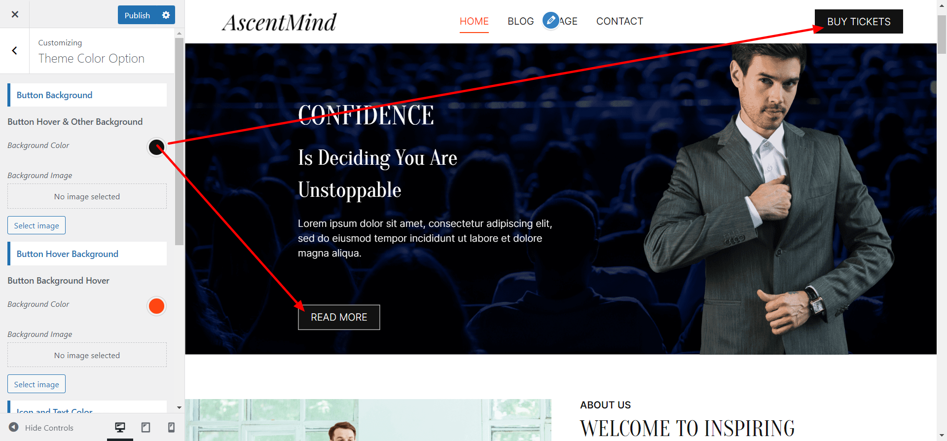 In order to proceed with theme color option, you can change complete font color and button background and border color on just one click. follow the instructions given below.
