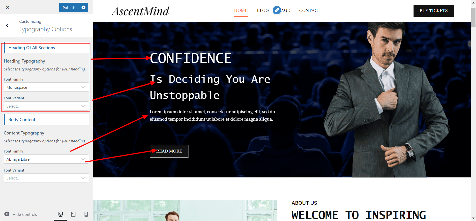 In order to proceed with Typography Options, you can change complete font style just one click. follow the instructions given below.