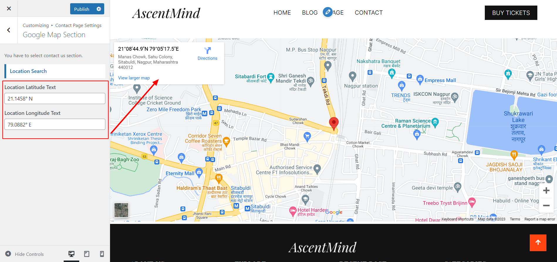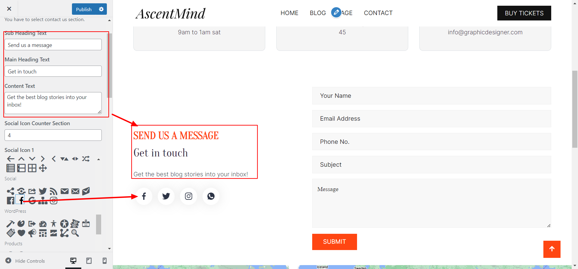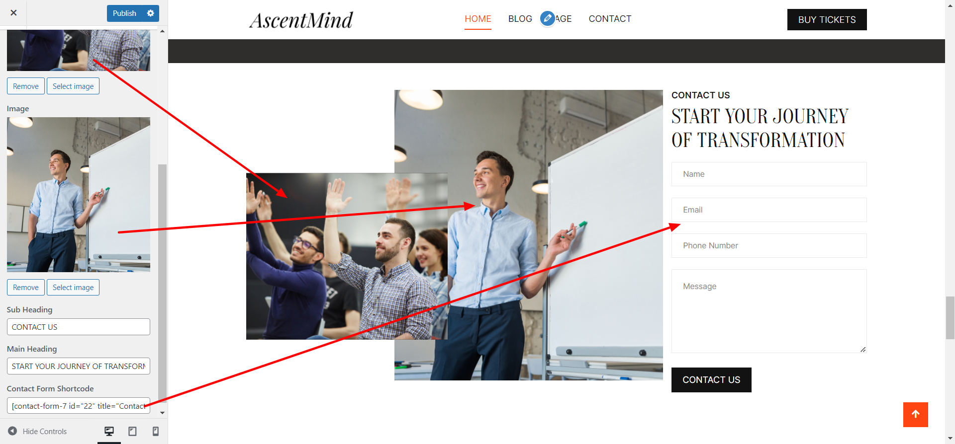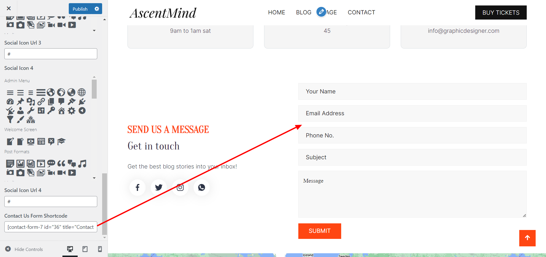 In the Dashboard, go to Appearance >> Customize >> Contact Page Settings >> Contact Form and Location Section