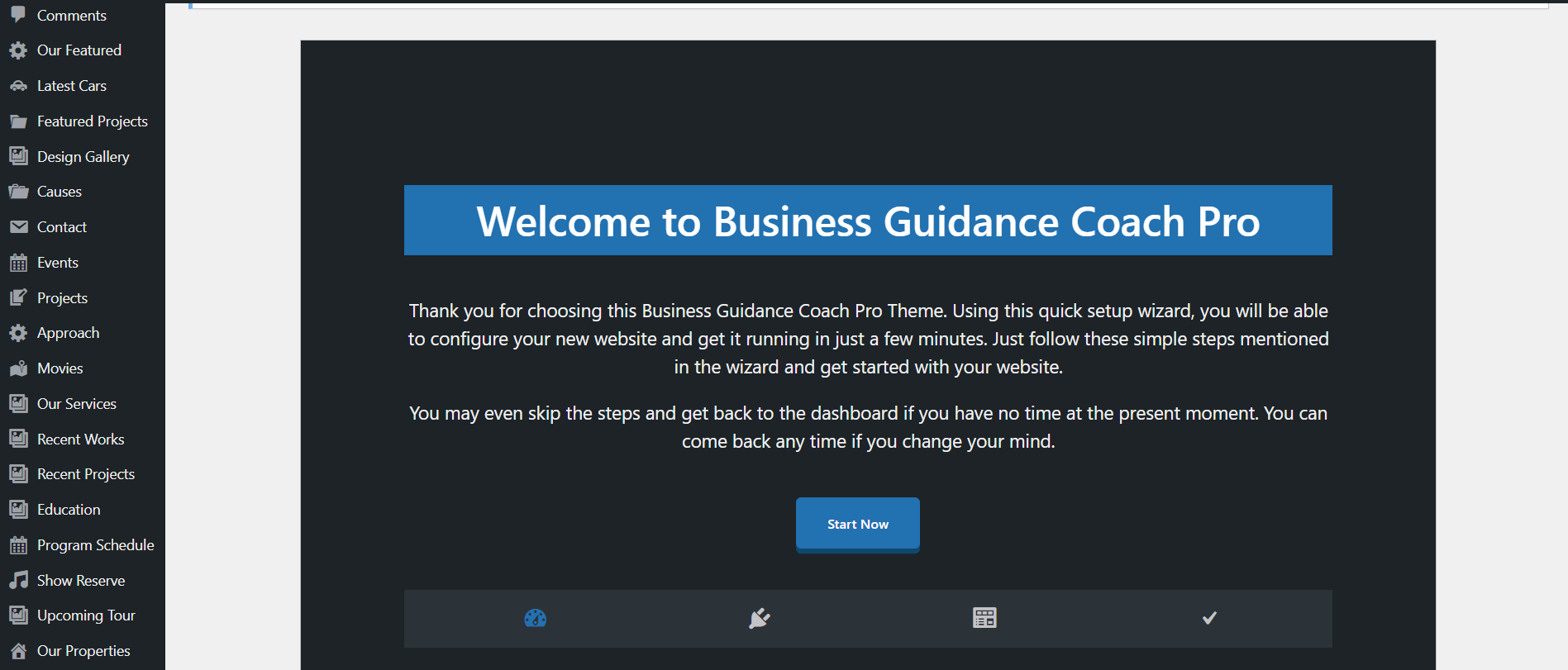 Once you are on the Business Guidance Coach Pro themes setup, click on the start button.