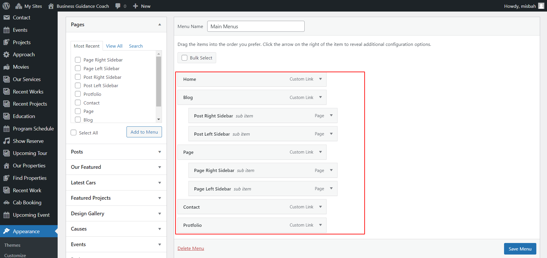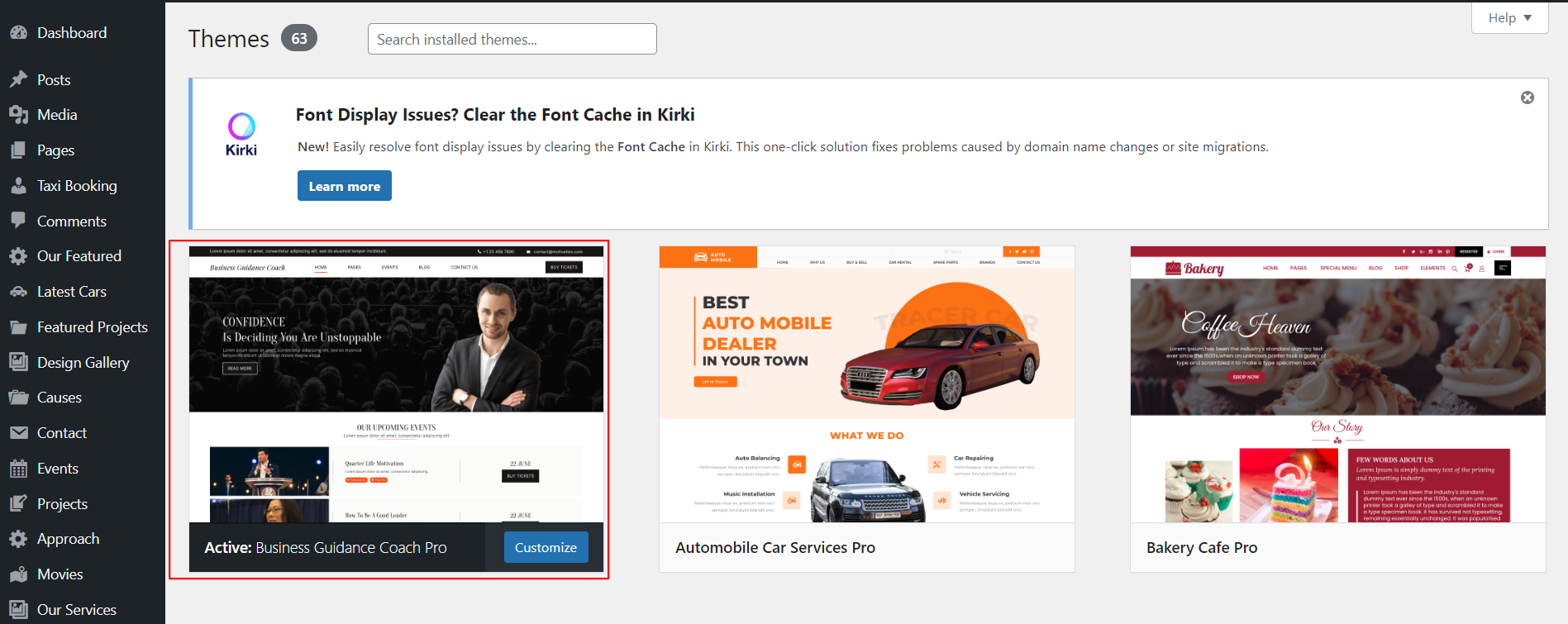 In the Dashboard, go to Appearance >> Business Guidance Coach Pro Themes Setup