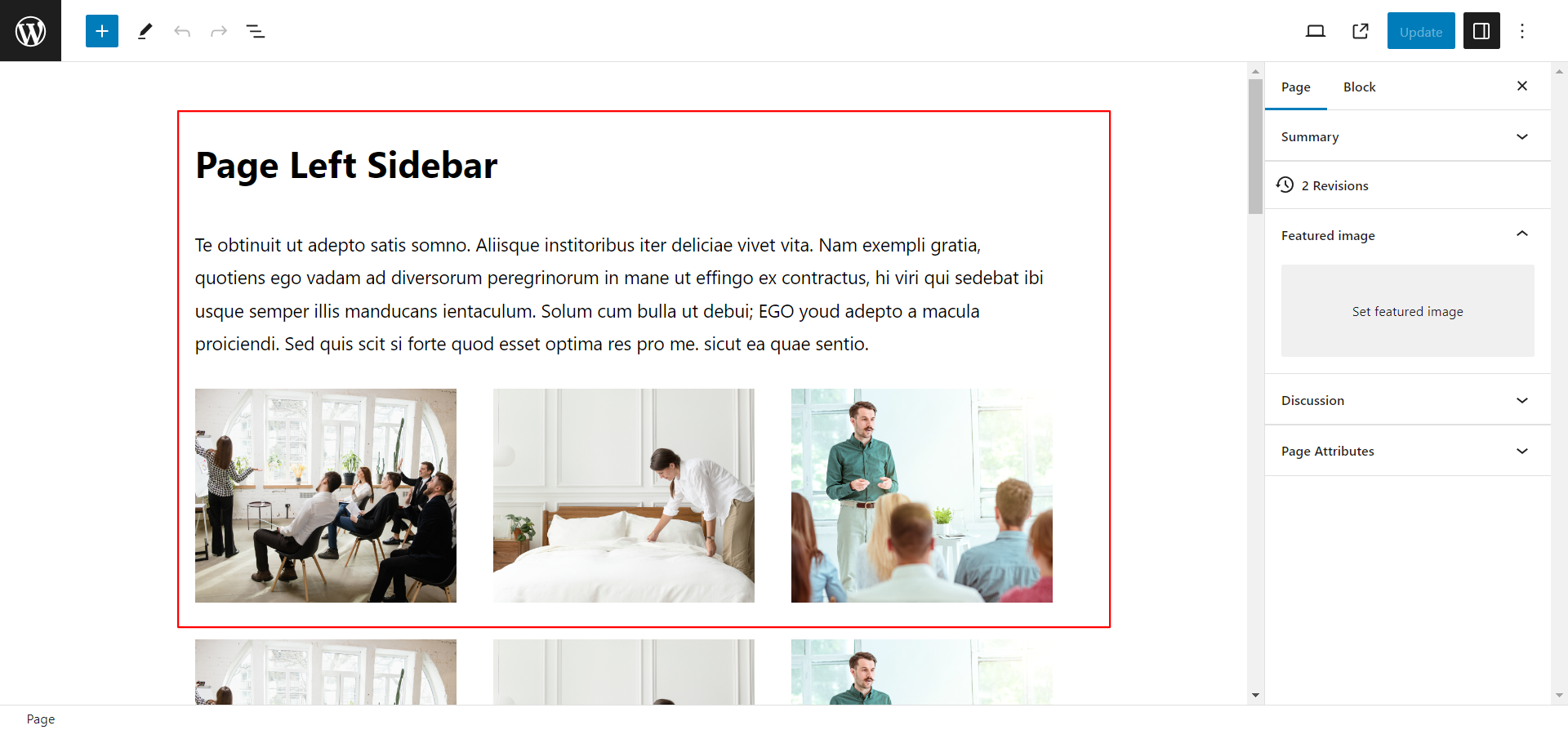 The options of this page template (like sections content, images and number of posts they display) can be controlled it.