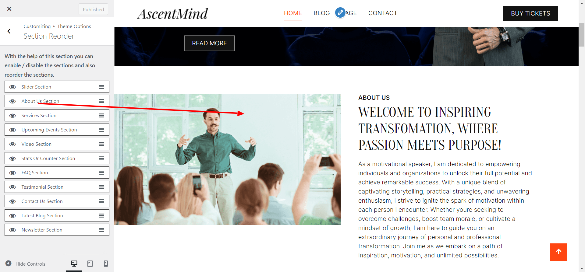 In order to proceed with you can change or reorder the section . follow the instructions given below.