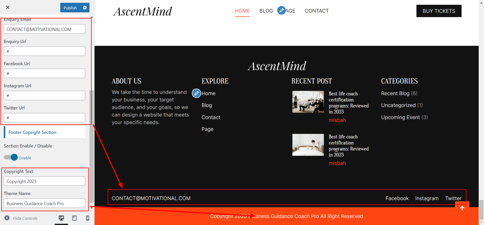 In order to proceed with footer Settings, You can also set footer logo , card image and card url. You can fill the copyright content to footer copyright Settings.