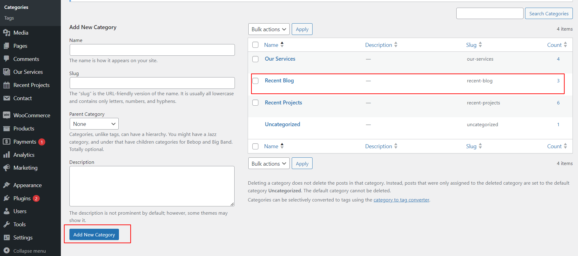 Select Create a new menu at the top of the page. Enter a name for your new menu in the Menu Name box. Click the Create Menu button.