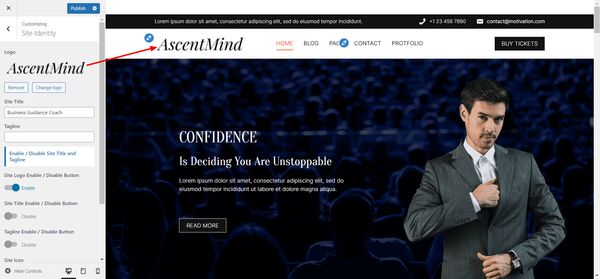 In order to proceed with Theme Logo setup, you can set site title and tagline, follow the instructions given below.