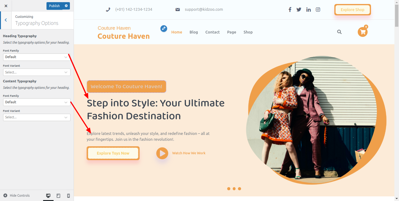 To proceed with the Typography Options, you can change complete font style just one click. following the instructions provided below.