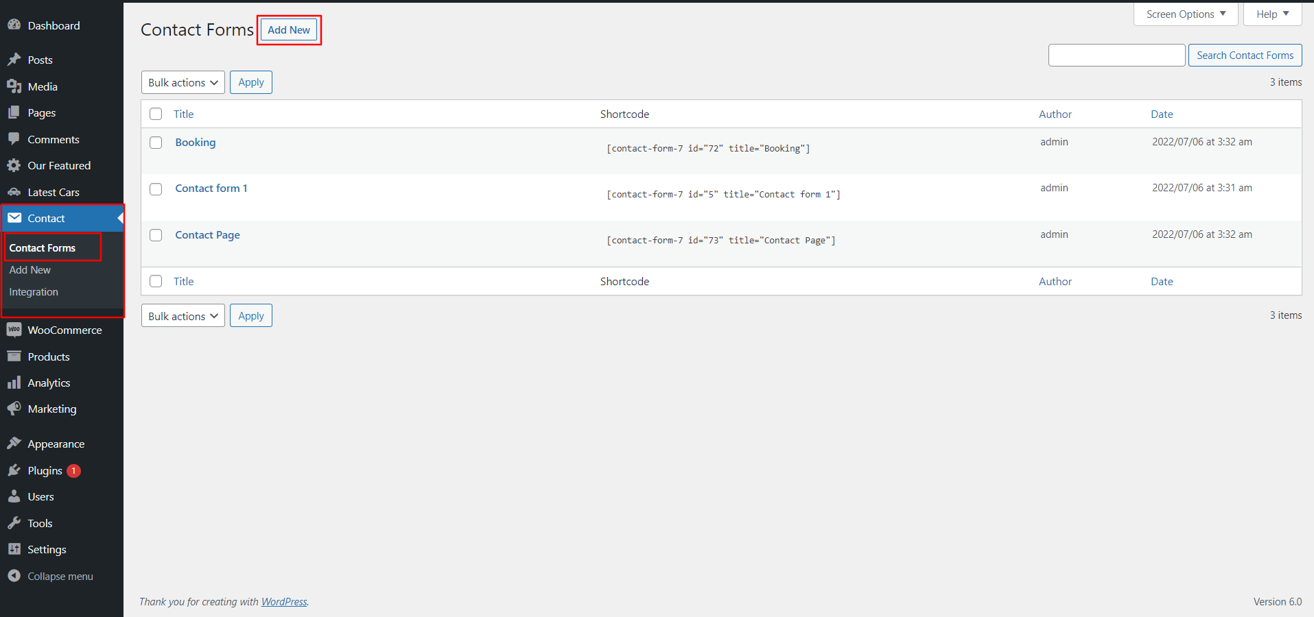 The Contact Form 7 plugin is installed in the usual way. Click Plugins > Add New search for Contact Form 7 in the WordPress dashboard's search bar. Choose the plugin from the search result, then click the Install Now button.