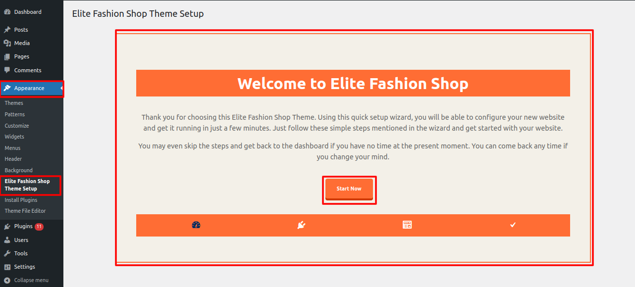 Once you are on the Elite Fashion Shop themes Configure, click on the start button.