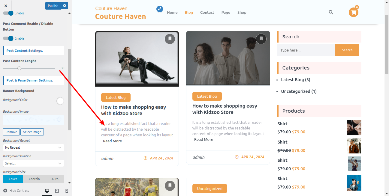 To proceed with the you can set post content lenght, following the instructions provided below.
