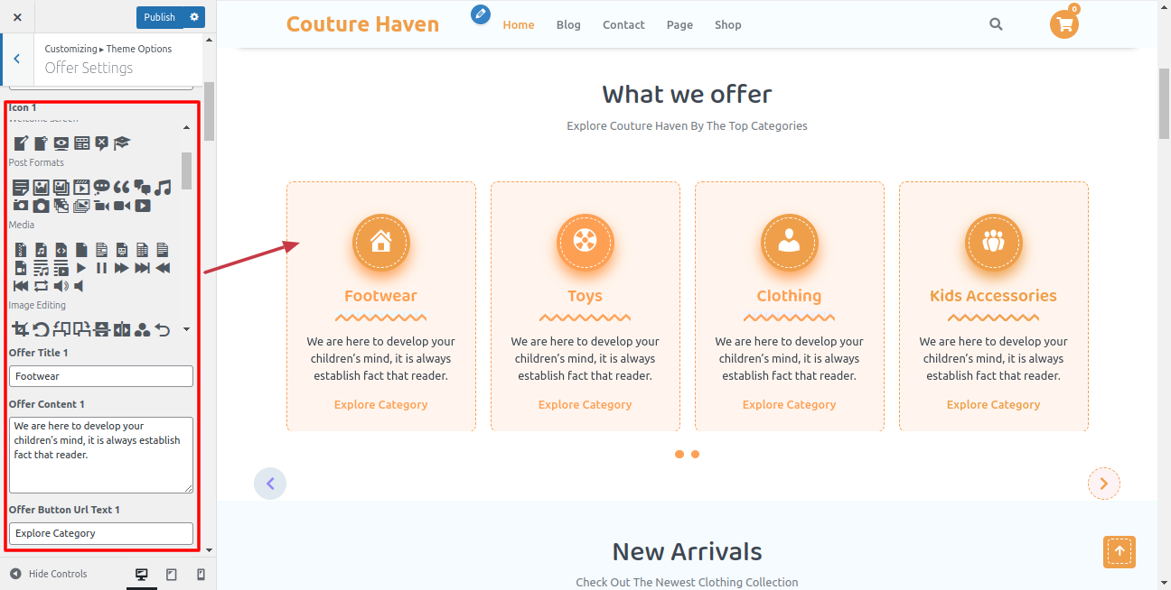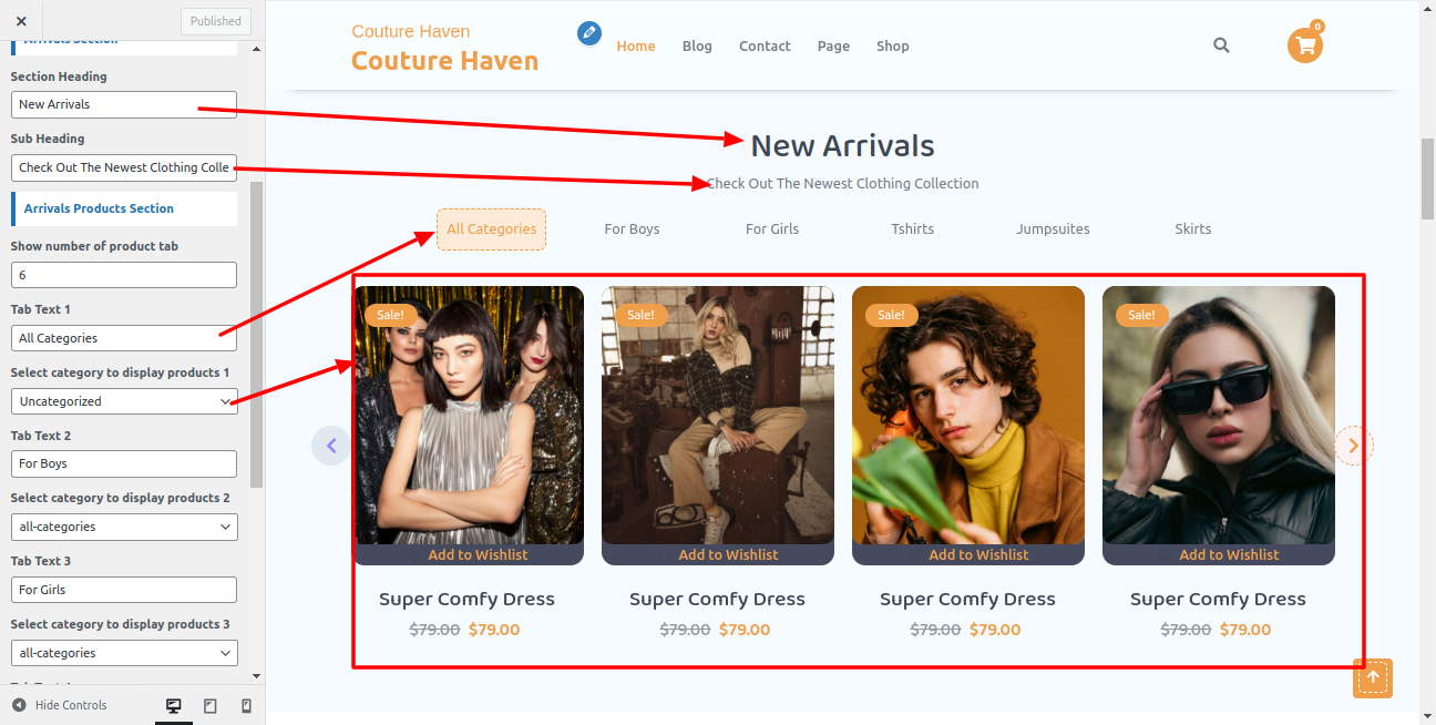 In the Dashboard, go to Appearance >> Customize >> Theme Options >> New Arrival Settings