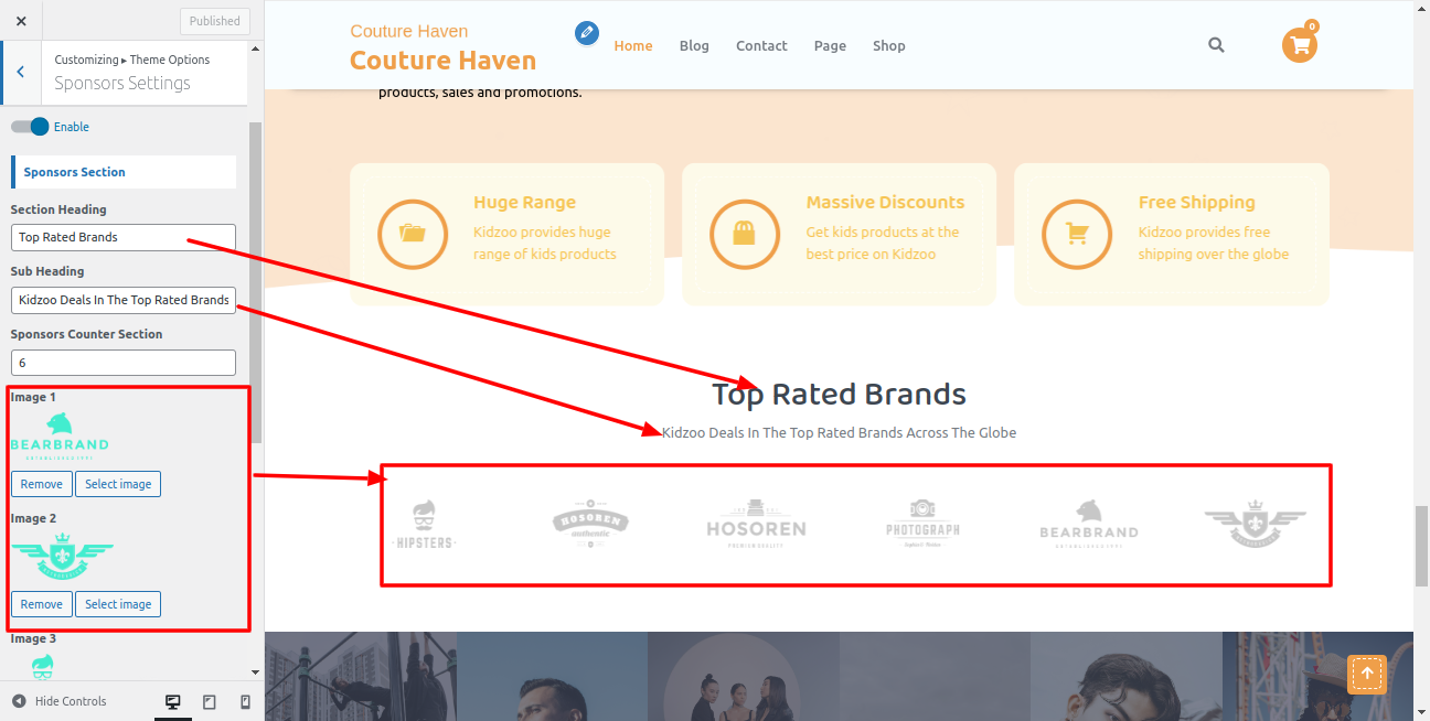 In the Dashboard, go to Appearance >> Customize >> Theme Options >> Sponser Settings
