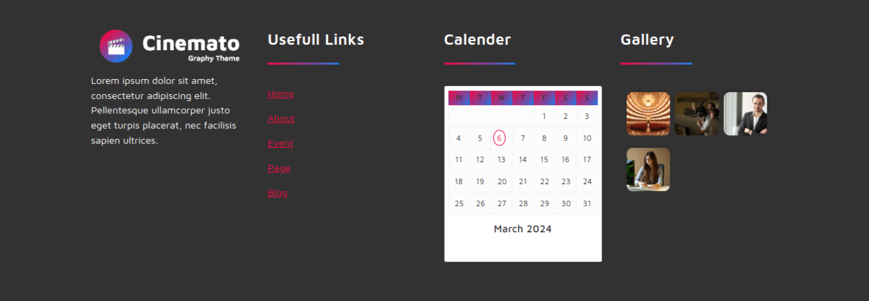 There are four columns in the footer. Any widget can be added there.