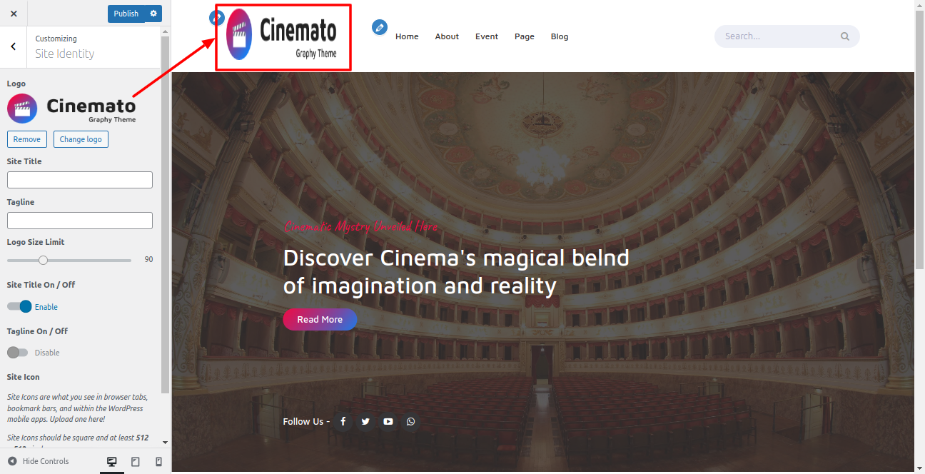 Proceed with Theme Logo setup, you can set site title and tagline, proceed as described below.