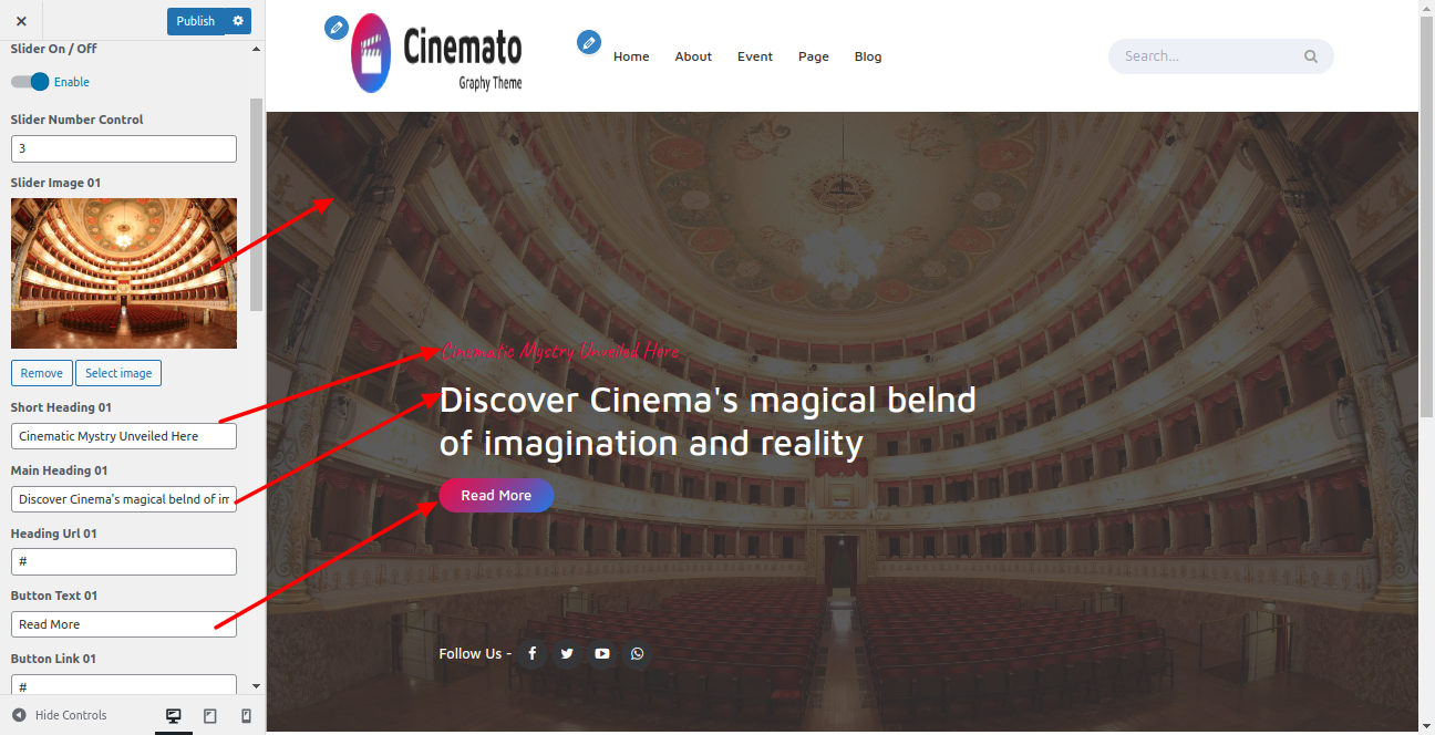 Proceed with Theme Slider Settings , you can set slide show , proceed as described below.
