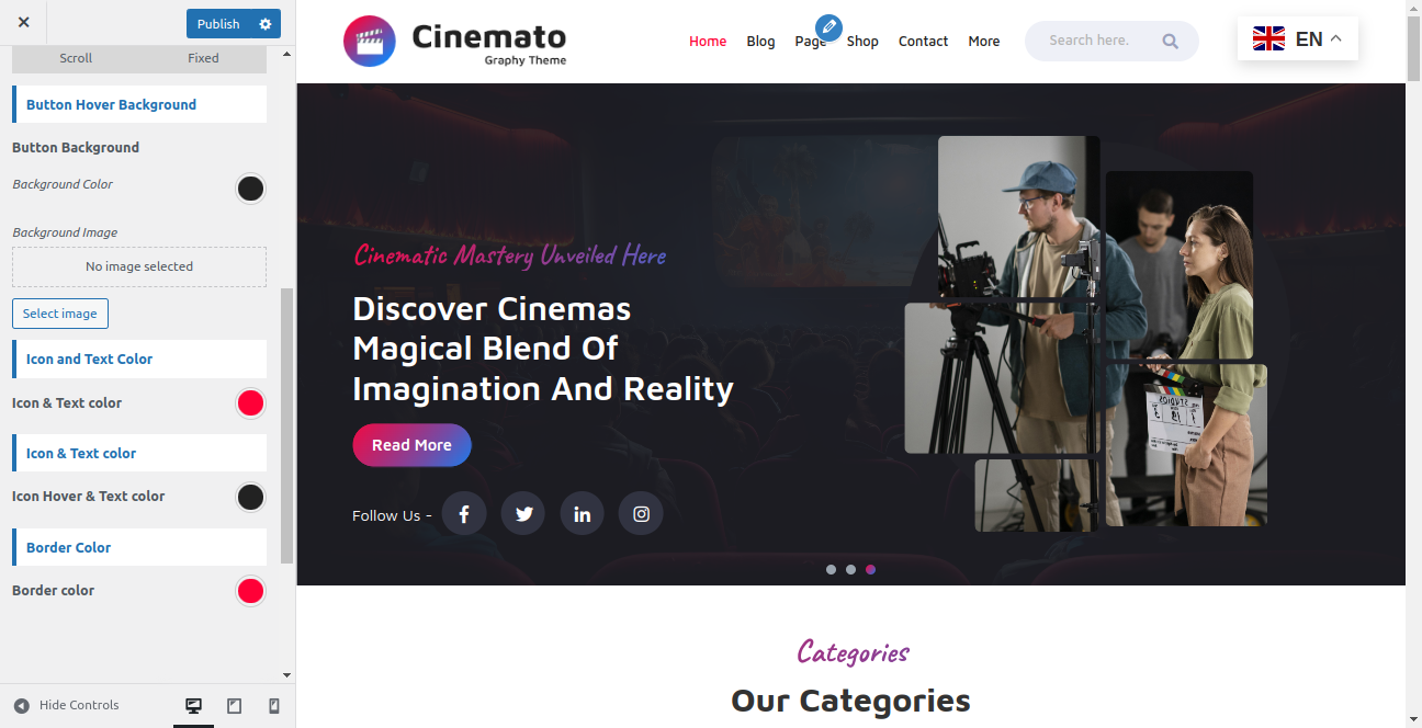 With just one click, you can change the entire font color as well as the background and border colors of buttons when using the theme color option.