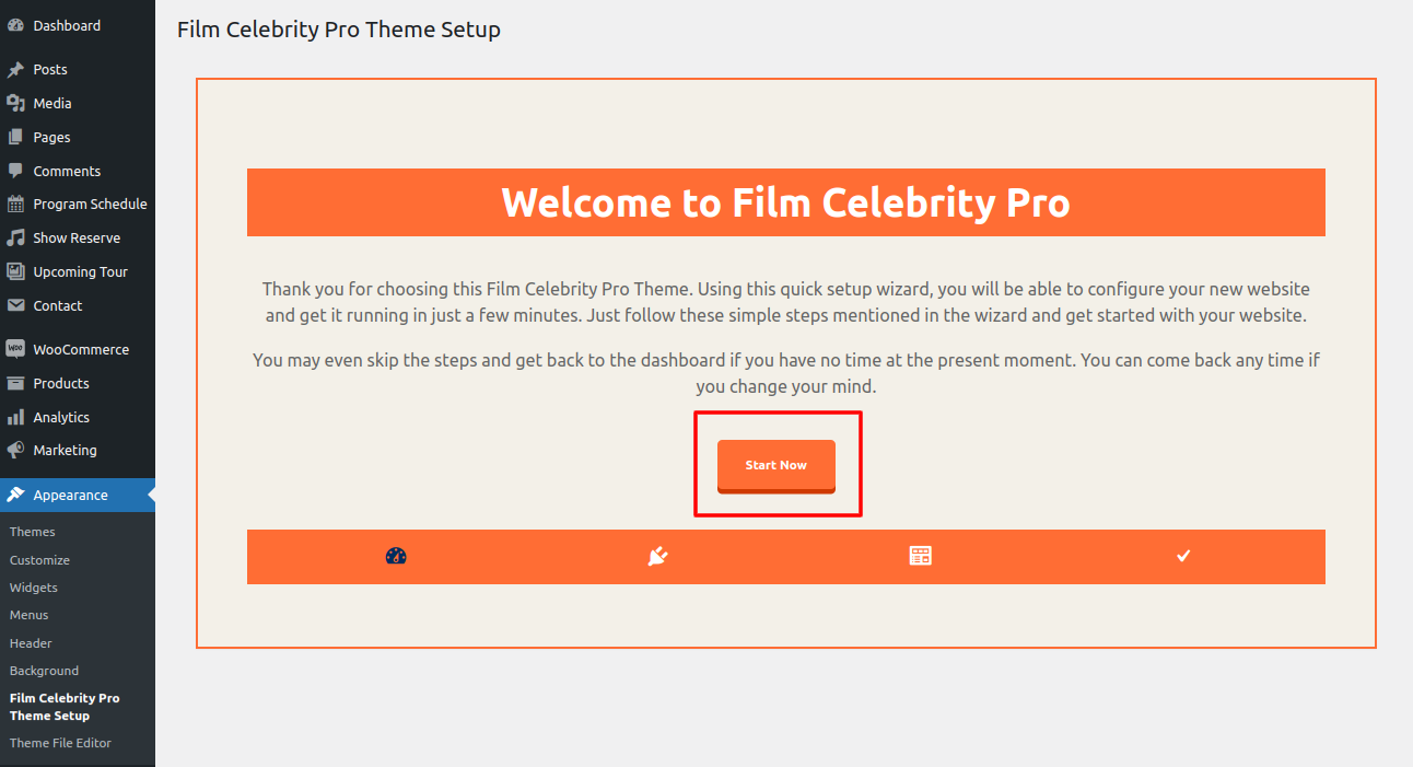 Once you are on the Film Celebrity Pro themes Configure, click on the start button.