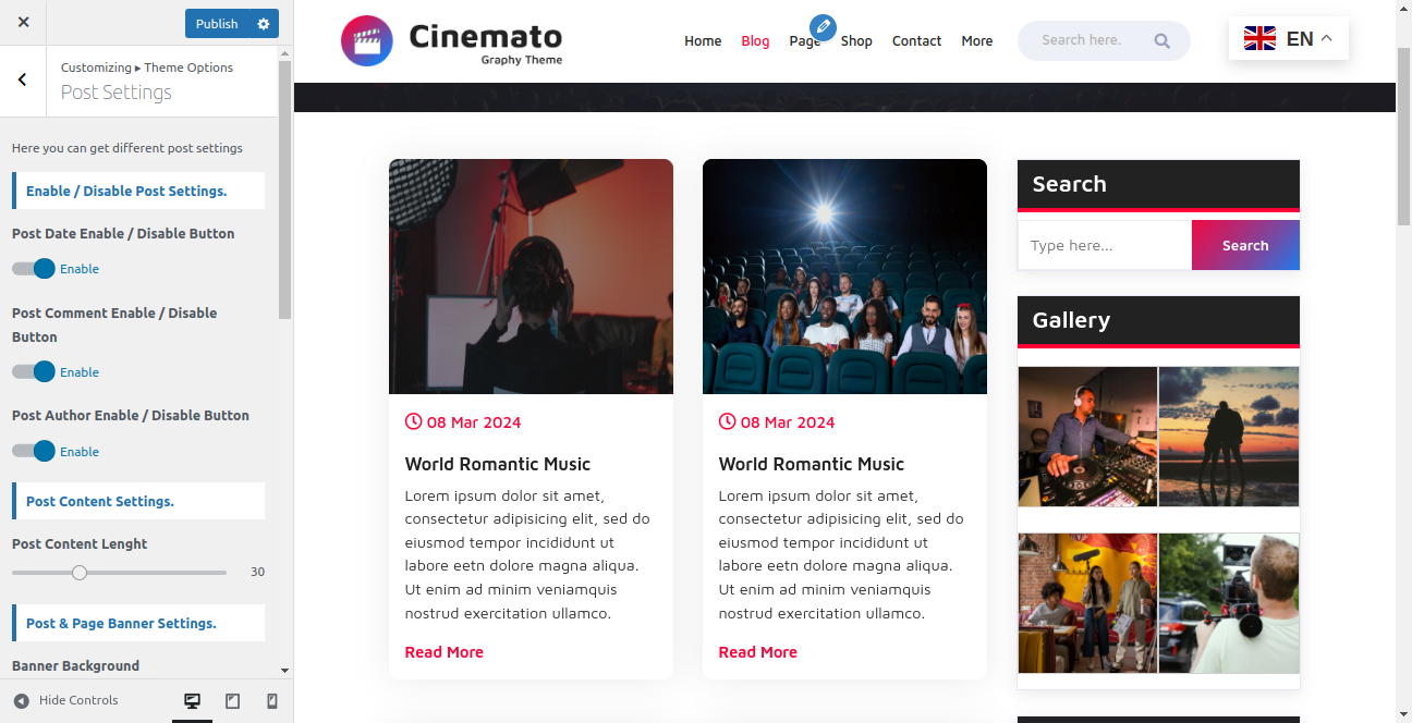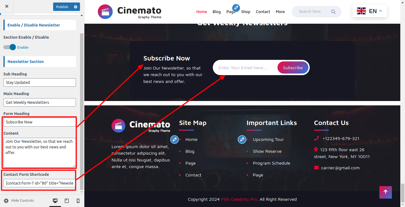 In the Dashboard, go to Appearance >> Film Celebrity Pro Themes Configure