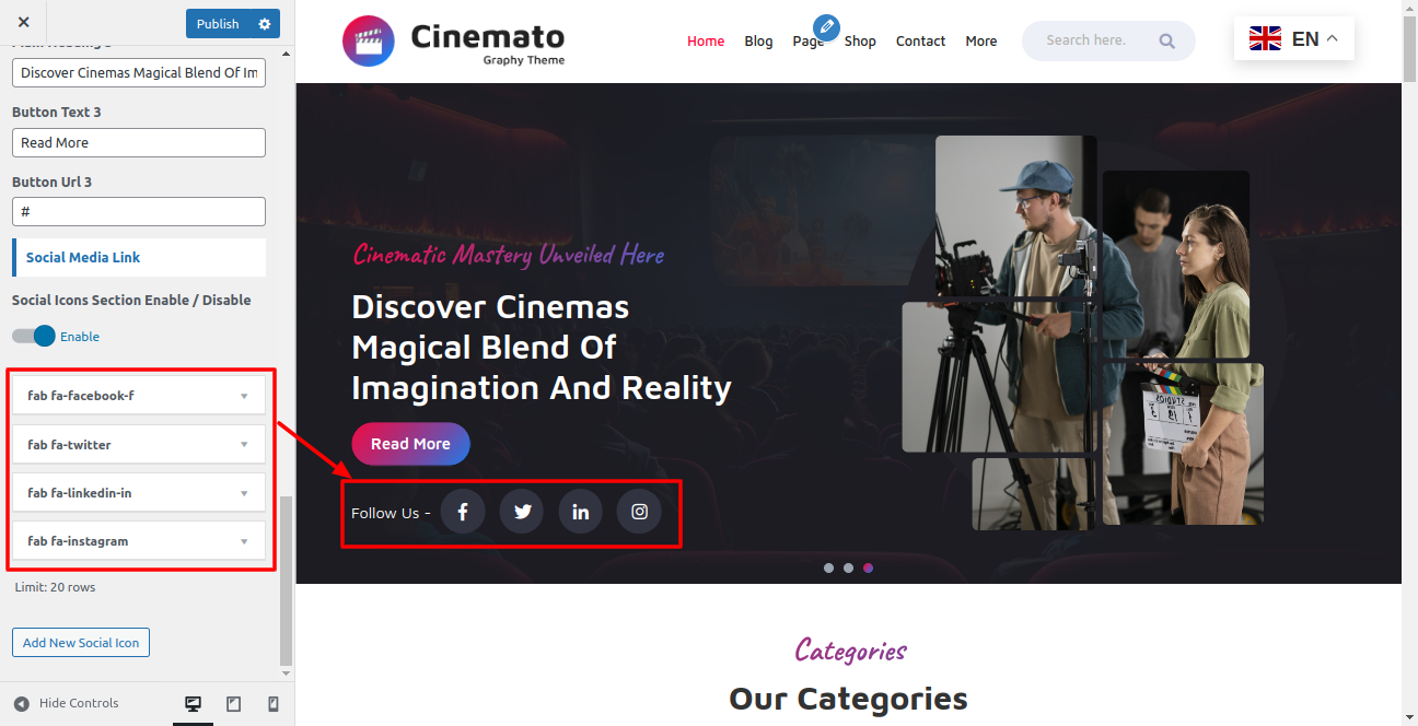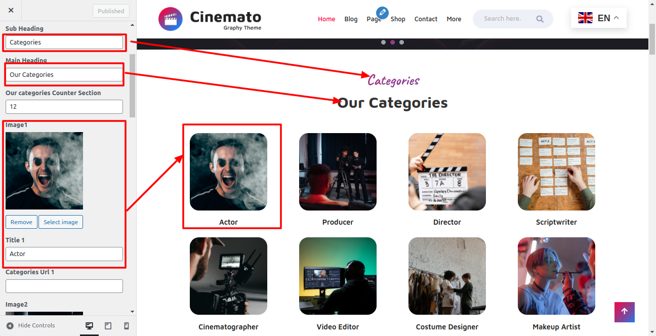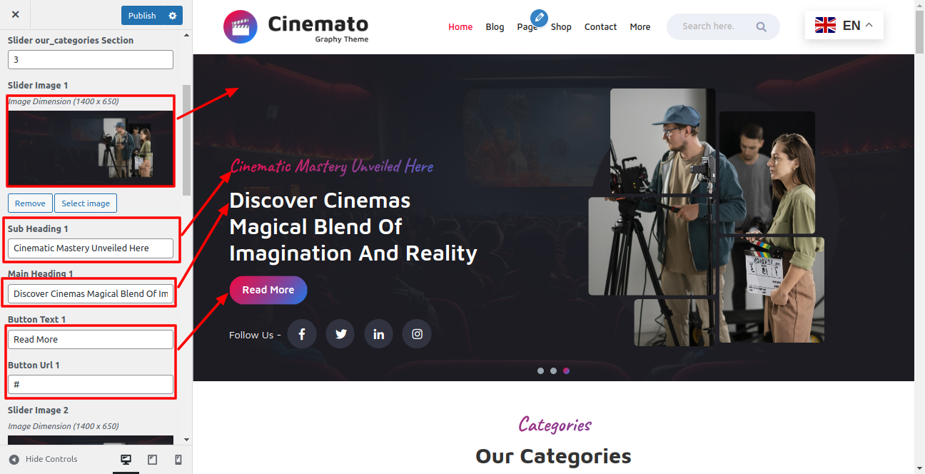 To configure the Theme Slider Settings, you have the following options for each slider:Set the heading and content for each slide.Set the button text for slider section.