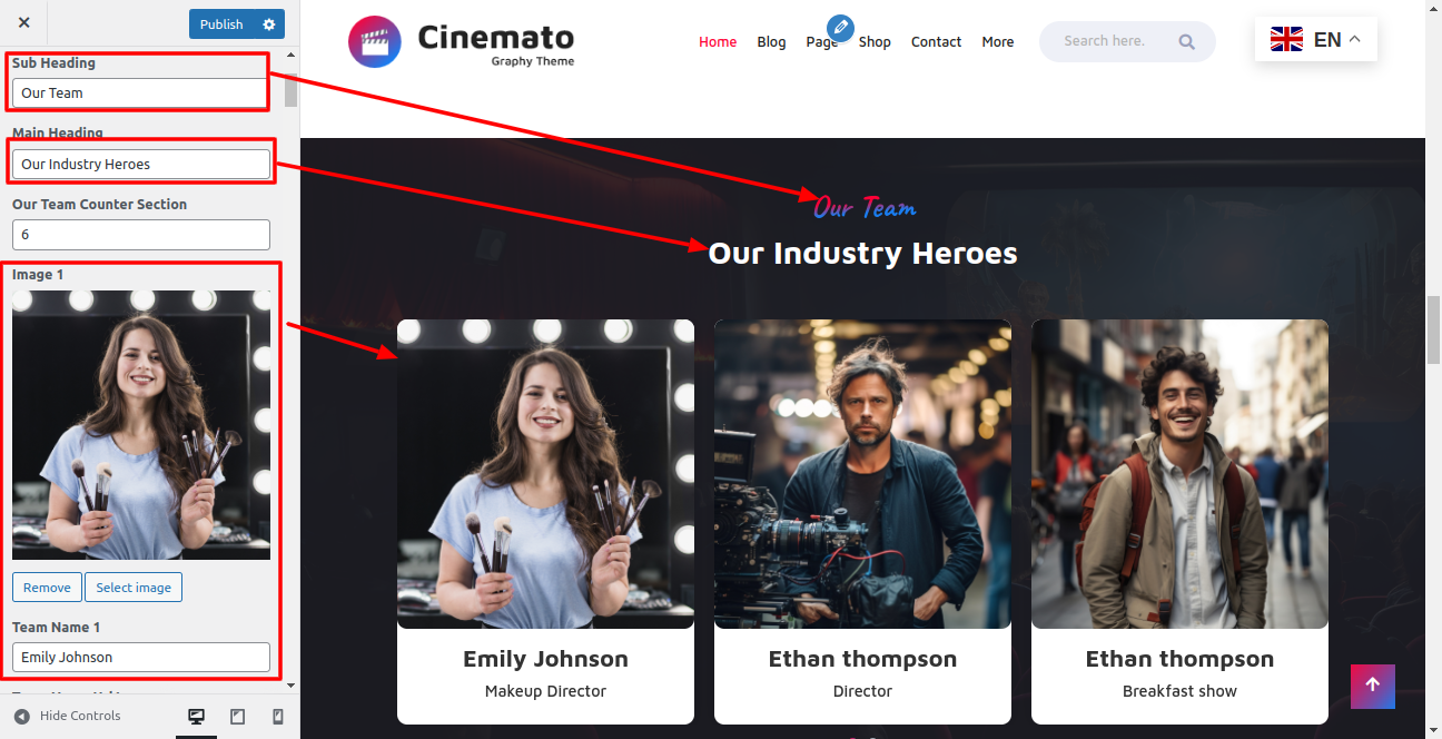 In the Dashboard, go to Appearance >> Customize >> Theme Options >> Our Team Settings