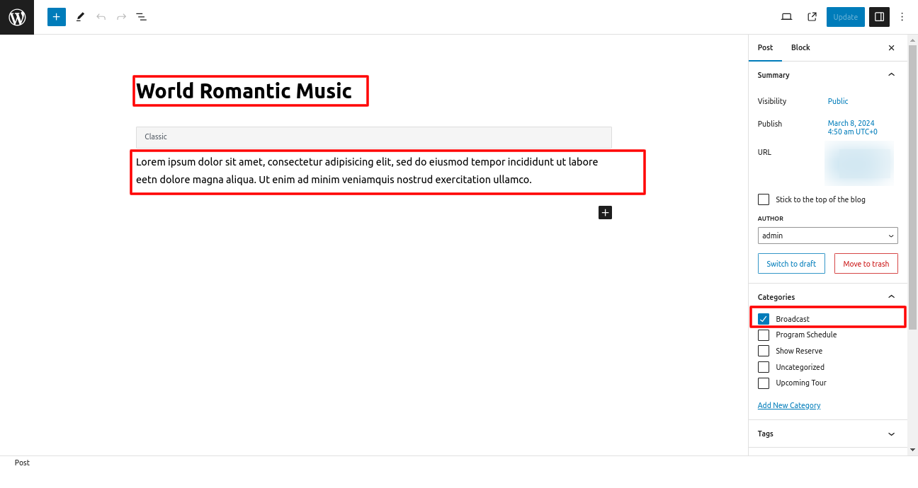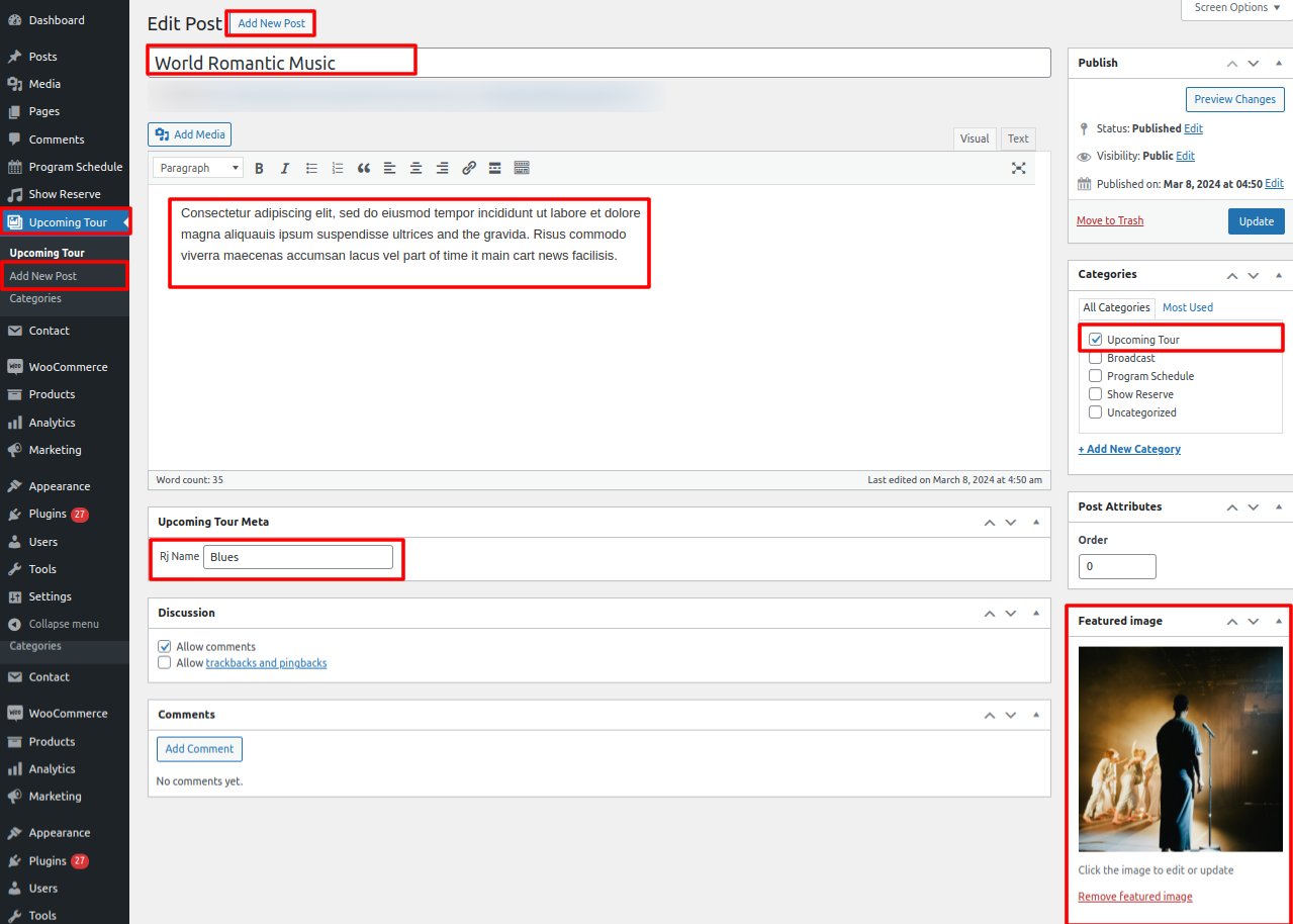 In the Dashboard, go to Upcomming Tour >> Add New Post