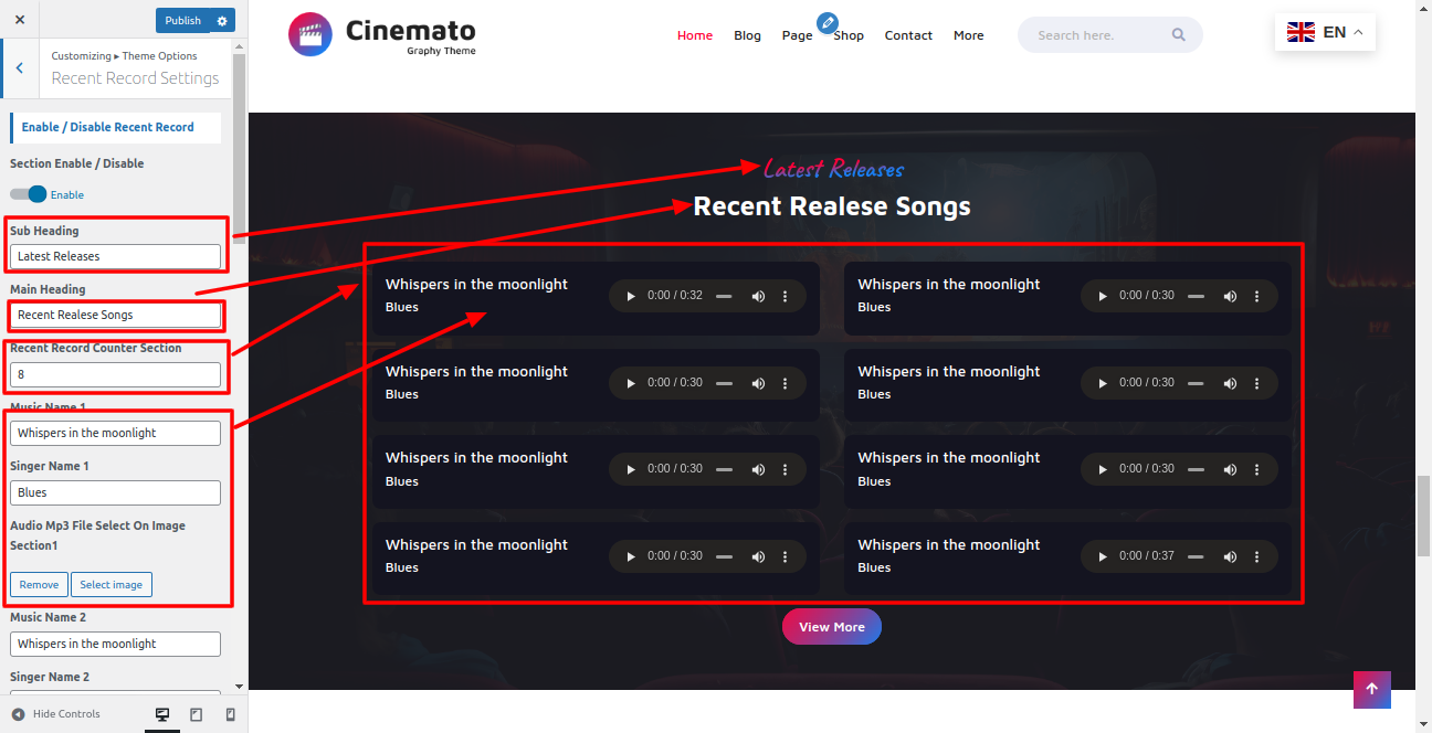 In the Dashboard, go to Appearance >> Customize >> Theme Options >> Recent Record Section Section