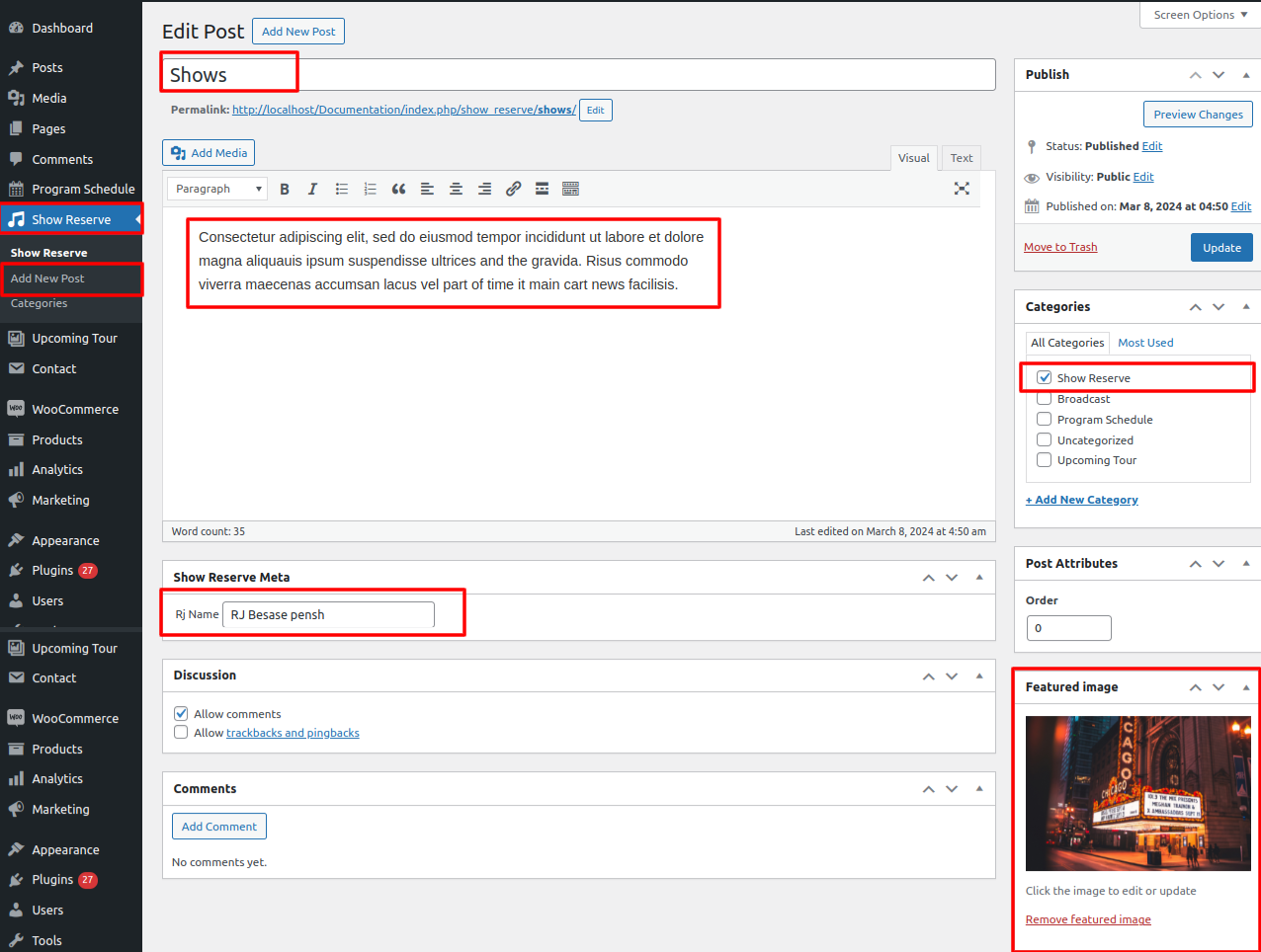 Important Step:- Film Celebrity Pro Custom Posttype plugin is necessary for creating a Show Reverse Settings.In the Dashboard, go to Prgram Shedule >> Add New Post