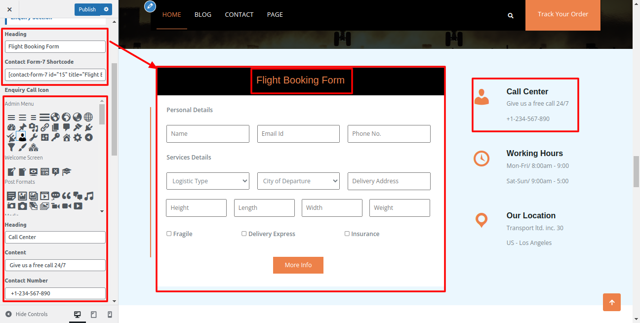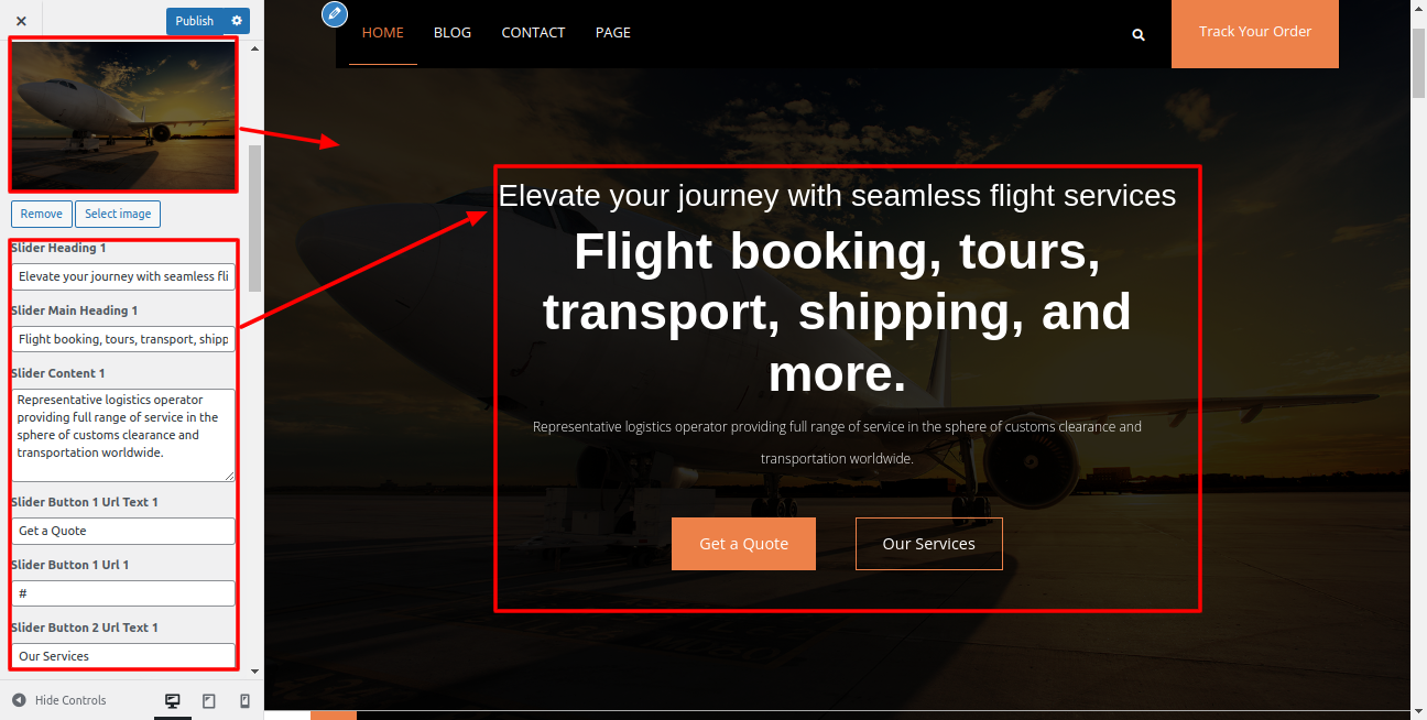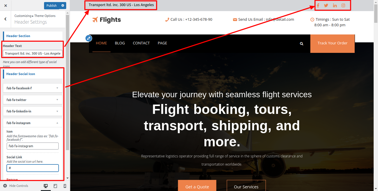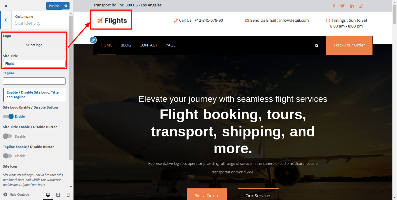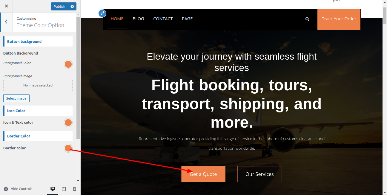 In the Dashboard, go to Appearance >> Flight booking Pro Themes Configure