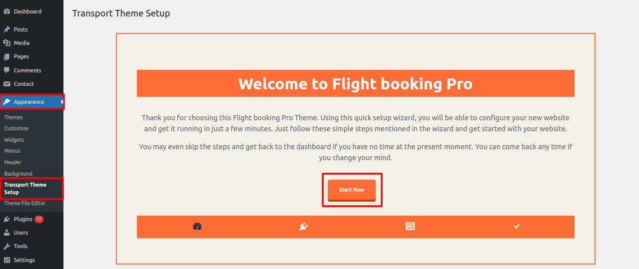 Once you are on the Flight booking Pro themes Configure, click on the start button.