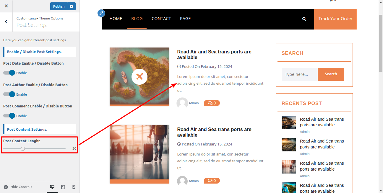 To proceed with the you can set post content lenght, following the instructions provided below.