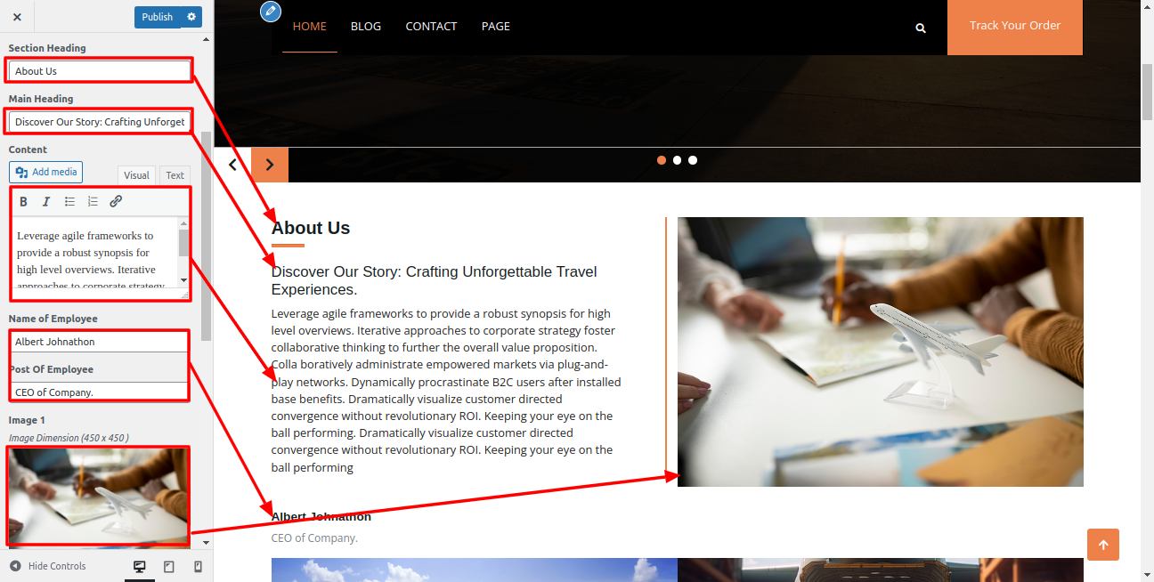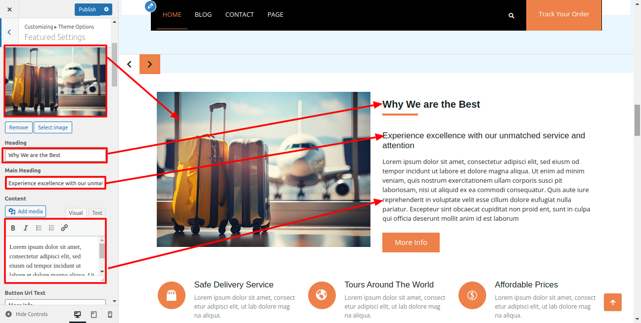 To configure the Theme Slider Settings, you have the following options for each slider:Set the heading and content for each slide.Set the button text for slider section.