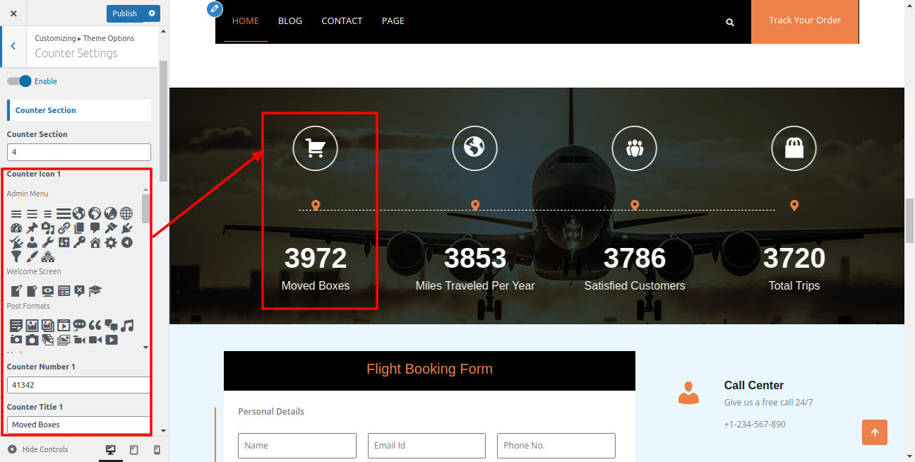 In the Dashboard, go to Appearance >> Customize >> Theme Options >> Counter Settings