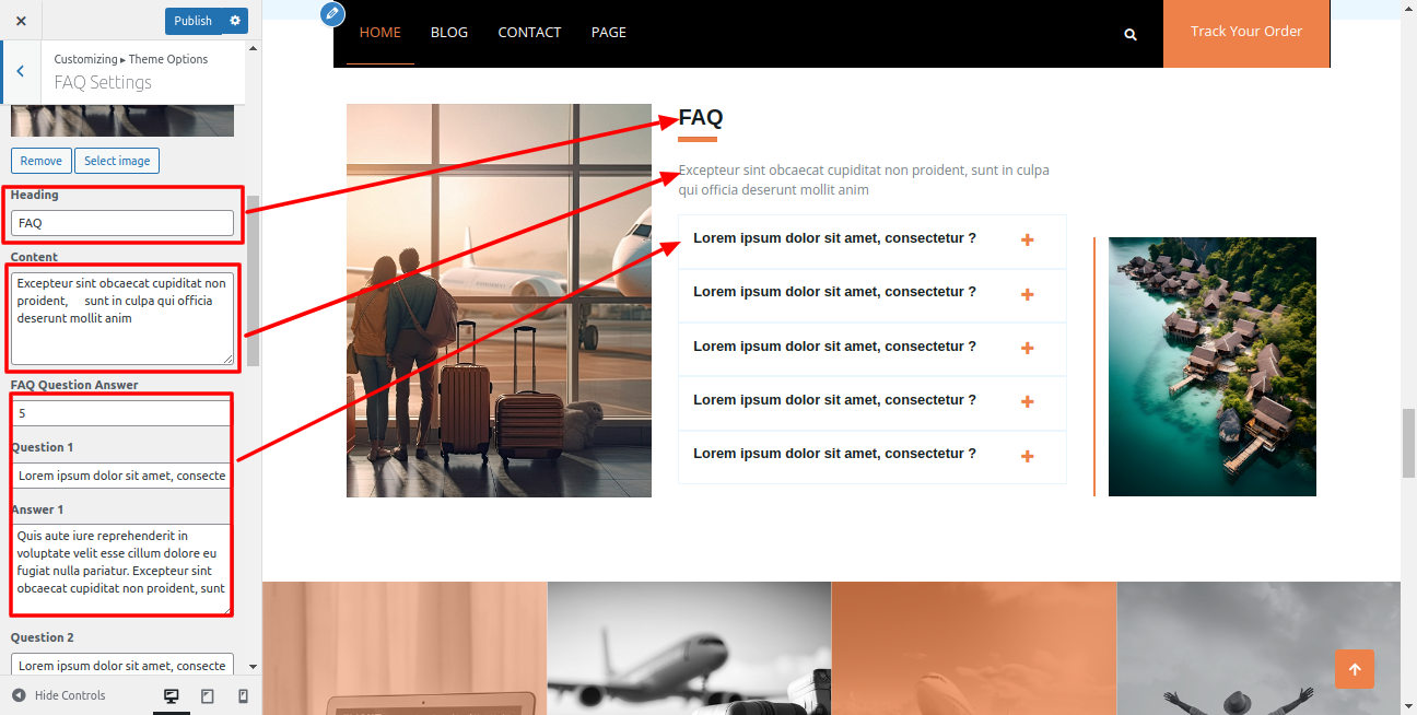 In the Dashboard, go to Appearance >> Customize >> Theme Options >> FAQ Section