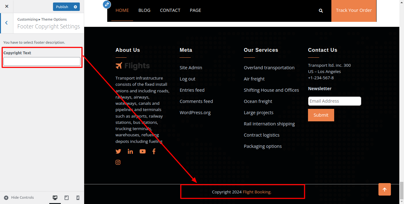 You can fill out the copyright content to footer copyright settings to continue with the footer settings.