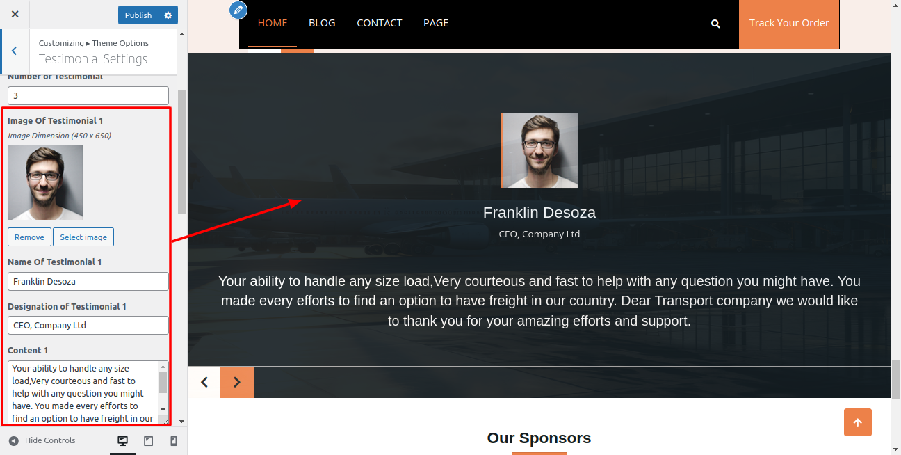You can set the main heading for this section. For each Sponsors, you can set the images. You have the following options to configure for each Our Sponsors setting
