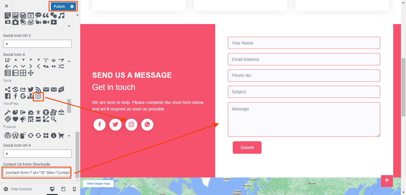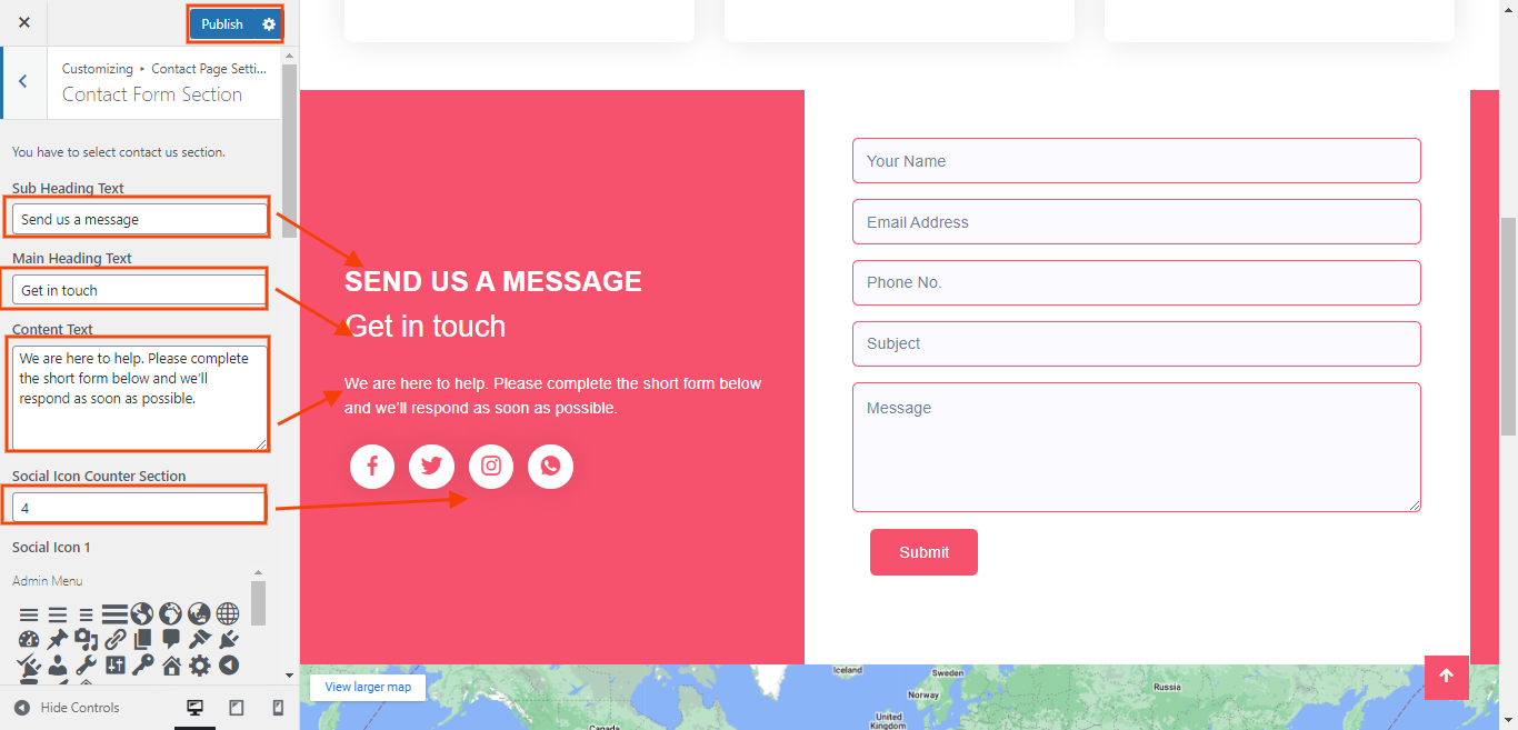 In the Dashboard, go to Appearance >> Customize >> Contact Page Settings >> Contact Form and Location Section