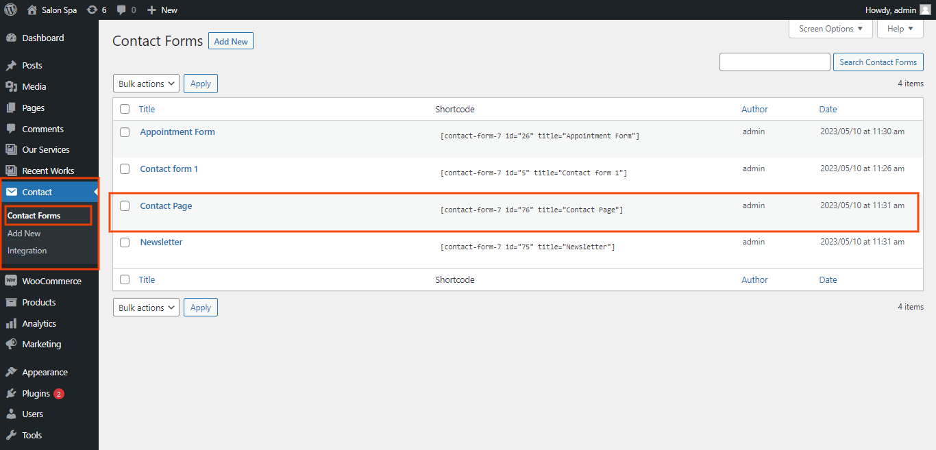 From the admin panel, just go to Contact > Contact Forms to create a Contact Form. There is a list of the forms that are available, though there are none, at now