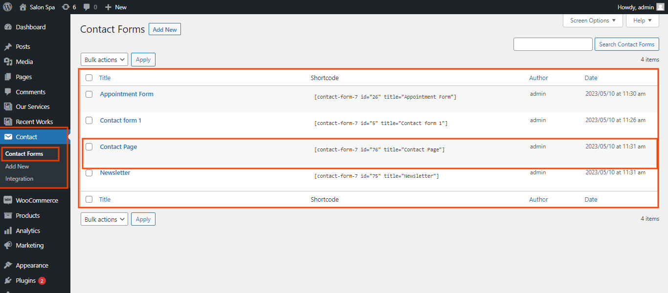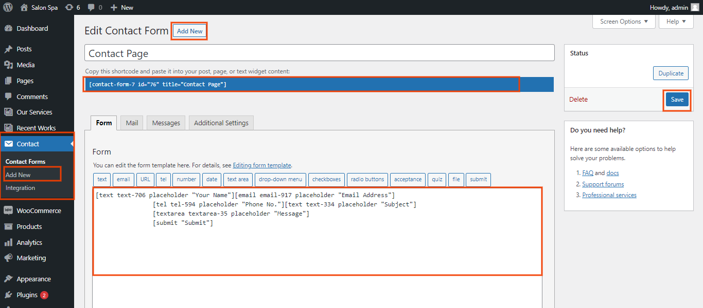 Scroll to Form and give this new contact form a name. You can make modifications to contact form template from here.