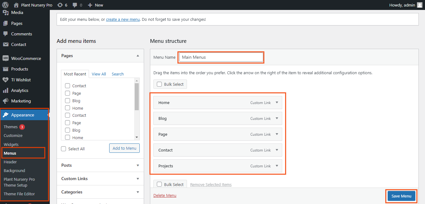 From the 'Appearance' menu on the left-hand side of the Dashboard, select the 'Menus' option to bring up the Menu Editor.