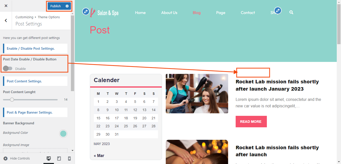 You can Enable / Disable post of admin, comments and date. You can choose from this options for each Post Settings.