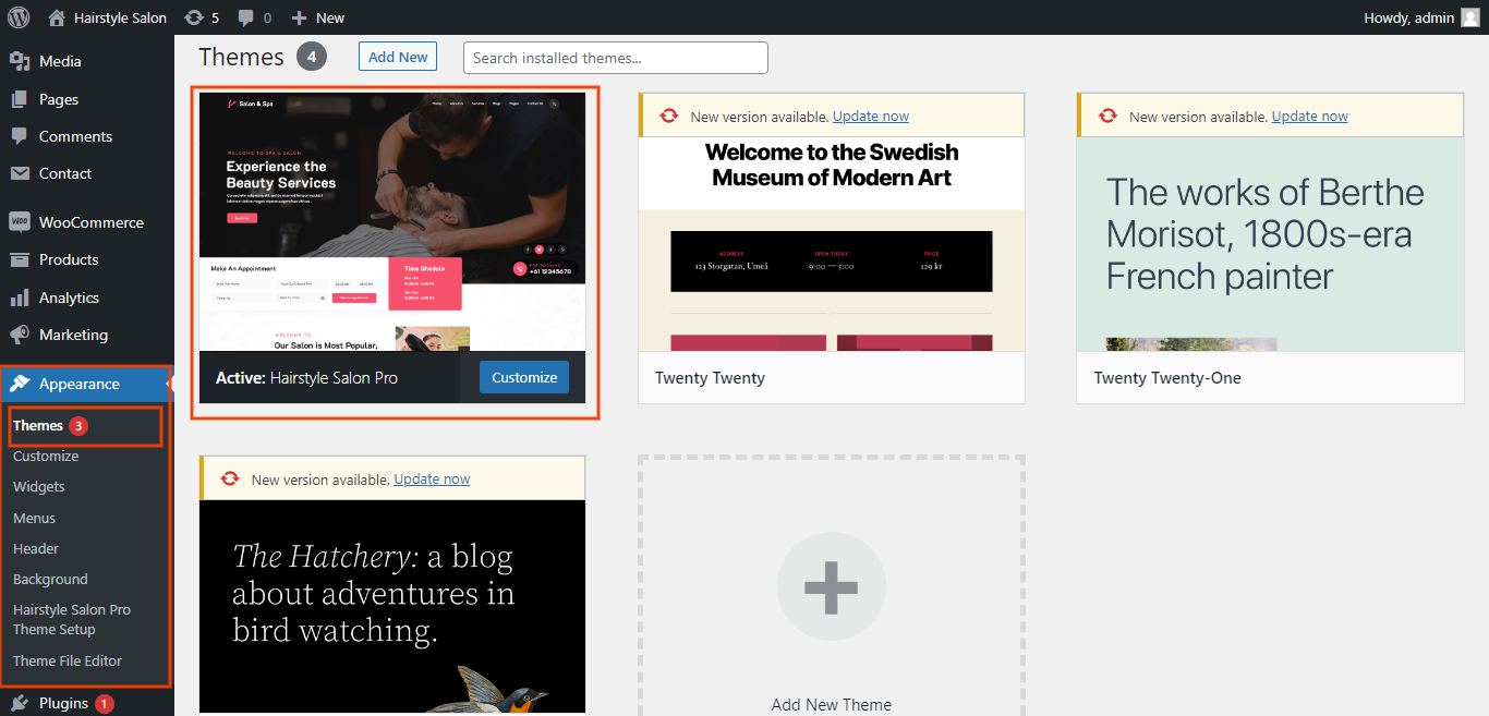 In the Dashboard, go to Appearance >> Hairstyle Salon Pro Themes Setup