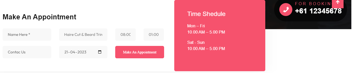 You can set Main Heading , Appointment Form Shortcode and Sub Heading, Week Name1 of section. You can choose from this options for each Appointment settings.