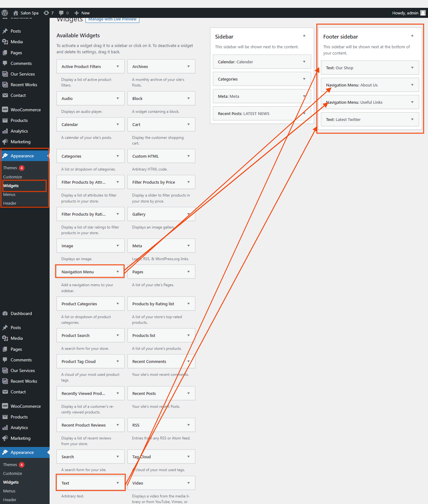 In order to manage content for footer and add some widgets, navigate to, follow the instructions given below.