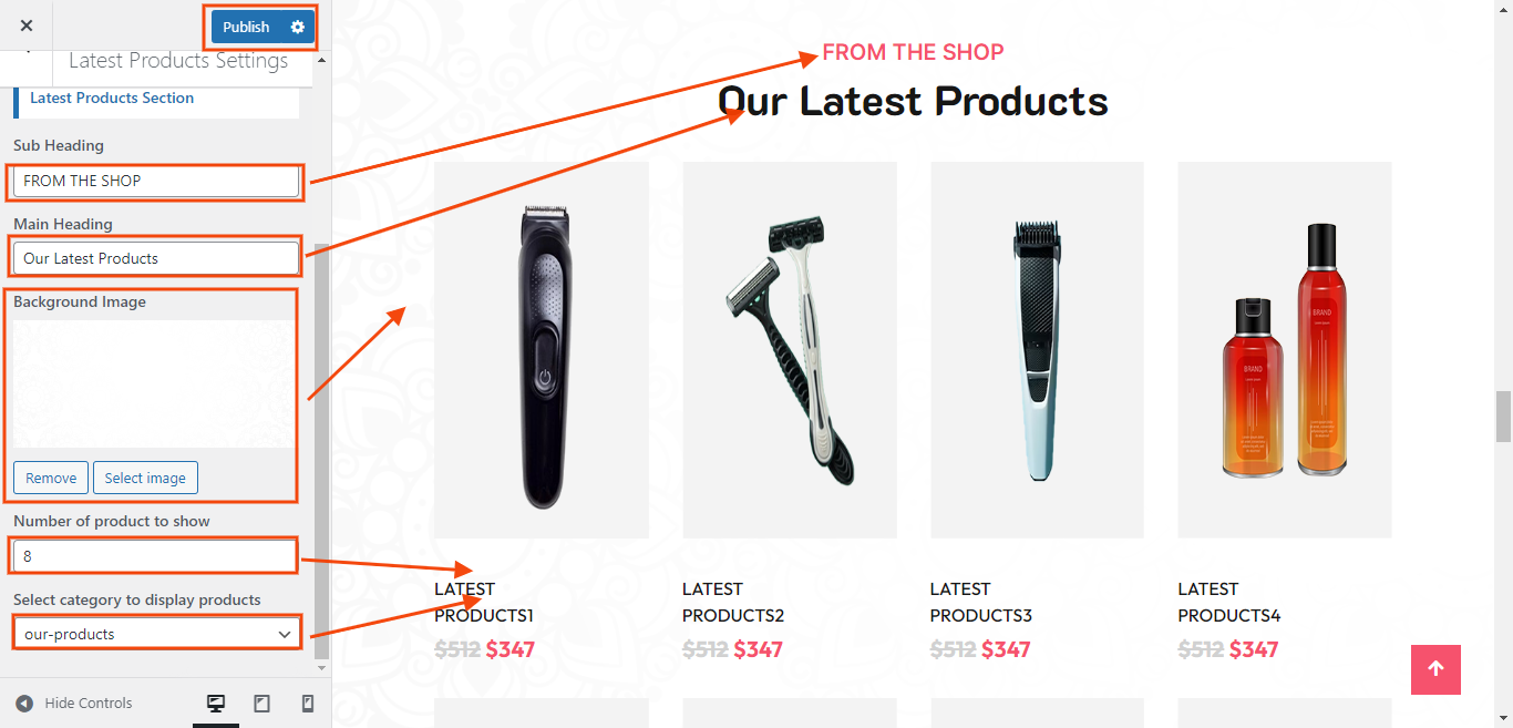 In the Dashboard, go to Appearance >> Customize >> Theme Options >> Latest Products Settings