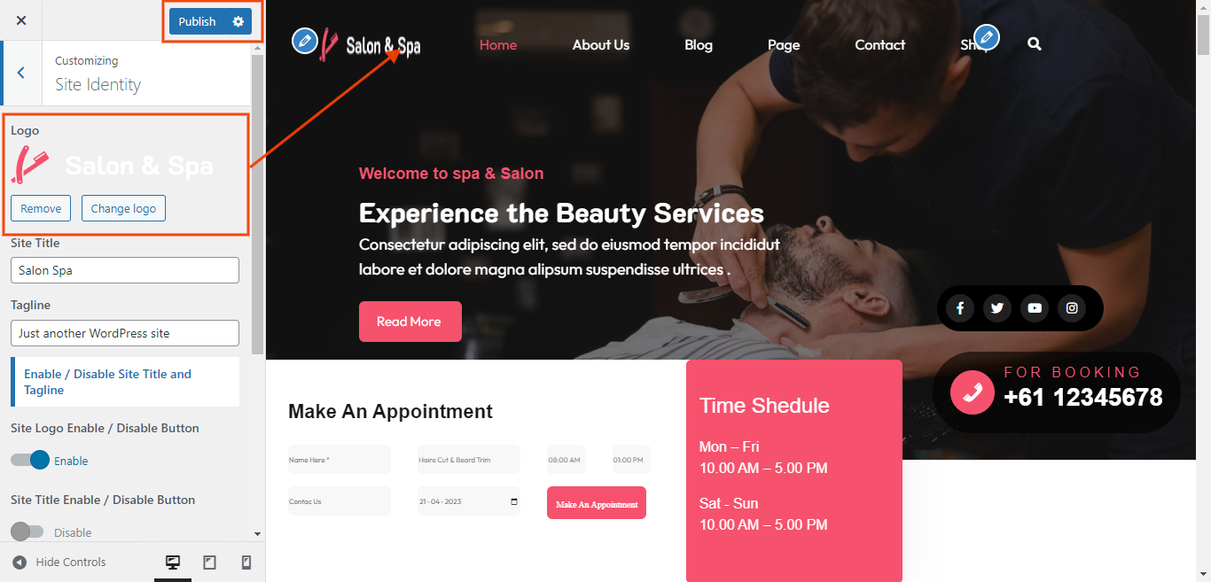 In order to proceed with Theme Logo setup, you can set site title and tagline, follow the instructions given below.