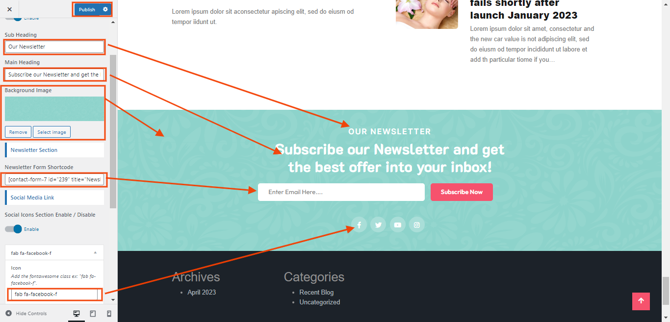 You can set sub heading main heading , heading , and price text and button section for each Newsletter settings