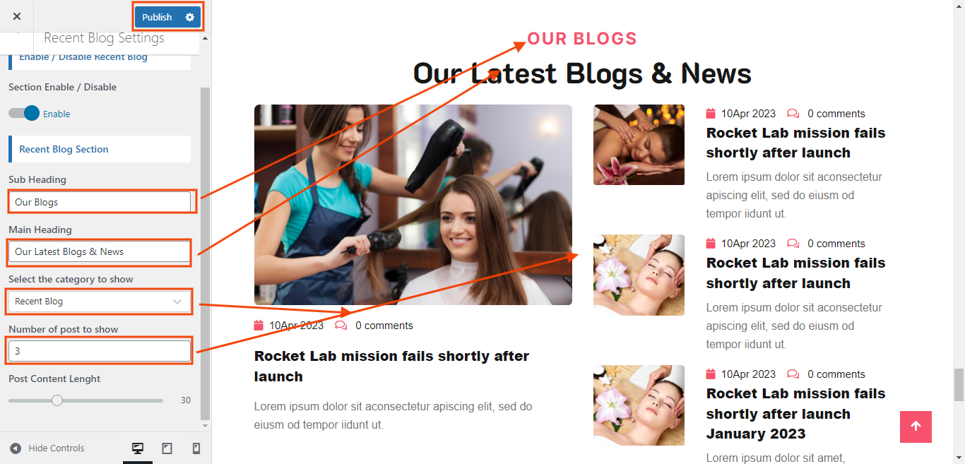 In the Dashboard, go to Appearance >> Customize >> Theme Options >> Recent Blog Settings