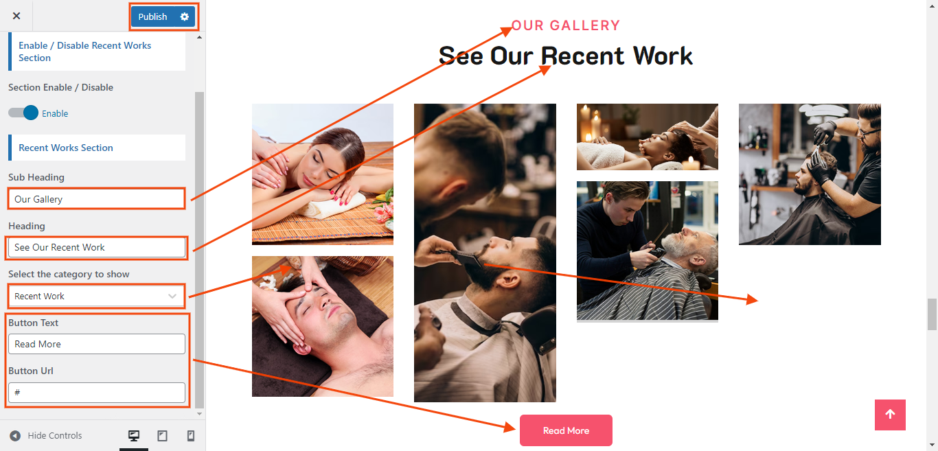 You can set heading and sub heading for section. You can choose from this options for each Recent Works settings.
