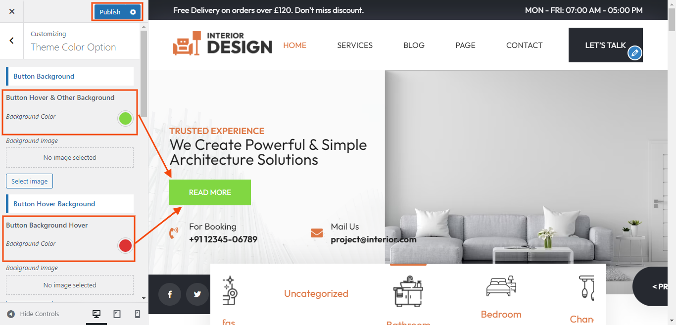 In order to proceed with theme color option, you can change complete font color and button background and border color on just one click. follow the instructions given below.