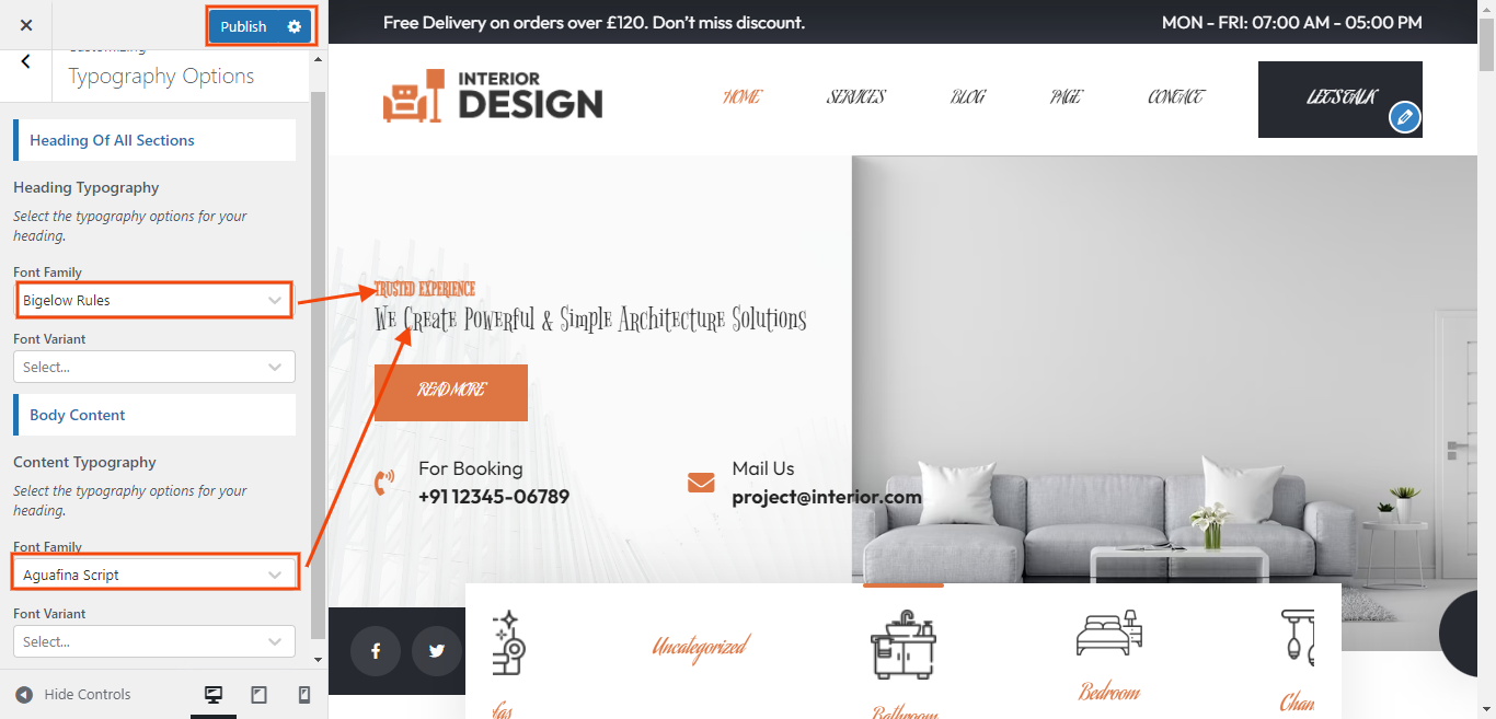 In order to proceed with Typography Options, you can change complete font style just one click. follow the instructions given below.